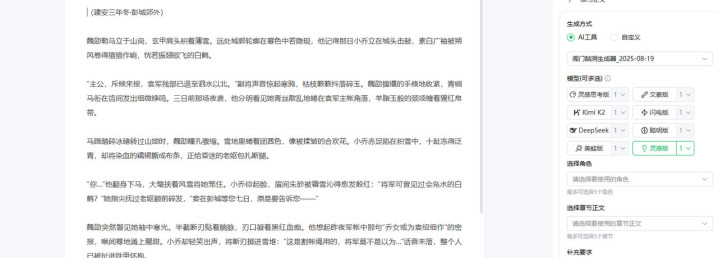 真实体验:生成的情节很合理,但文风偏“直白”,需要后期润色。适合拿来当大纲工具,不适合直接发文。